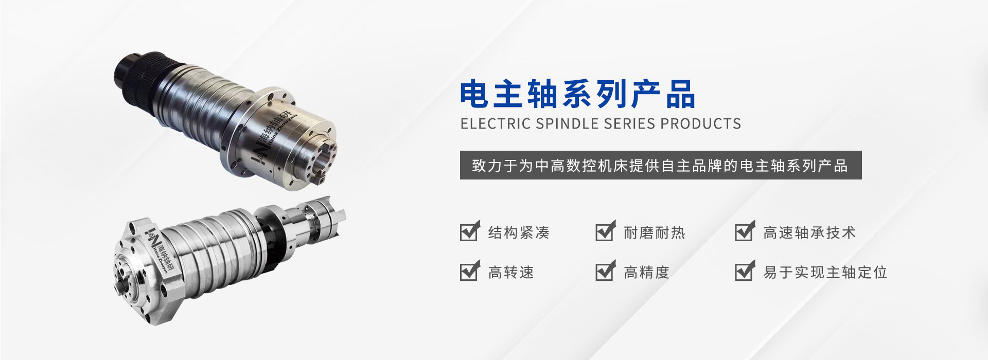 公司致力于為中高數(shù)控機床提供自主研發(fā)自主品牌的電主軸系列產(chǎn)品,通過堅持不懈的技術(shù)攻關(guān)和持之以恒的品質(zhì)管理,嚴格生產(chǎn)工序控制,售前售后的緊密跟蹤逐步形成一套完整成熟的業(yè)務體系。為不同類型機床提供主軸設計,現(xiàn)有數(shù)控車床主軸單元,數(shù)控車床電主軸、加工中 心電主軸及直聯(lián)機械主軸,走心車床電主軸,機械主軸,磨床電主軸,光伏主軸等系列主軸產(chǎn)品。